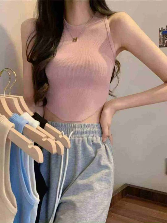 夏季新款甜辣妹性感小众不规则弹力修身显瘦针织背心,独立包装,均码面料柔...