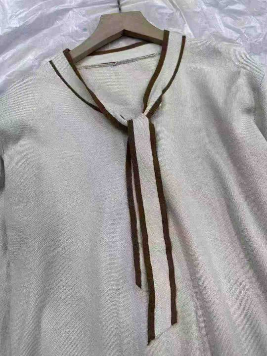气质且优雅女蝴蝶结系带长袖毛衣时尚新款设计感拼色羊毛打底衫,弹力超大,优雅韩系,穿上气质高雅,版型漂亮,货不多,手慢️