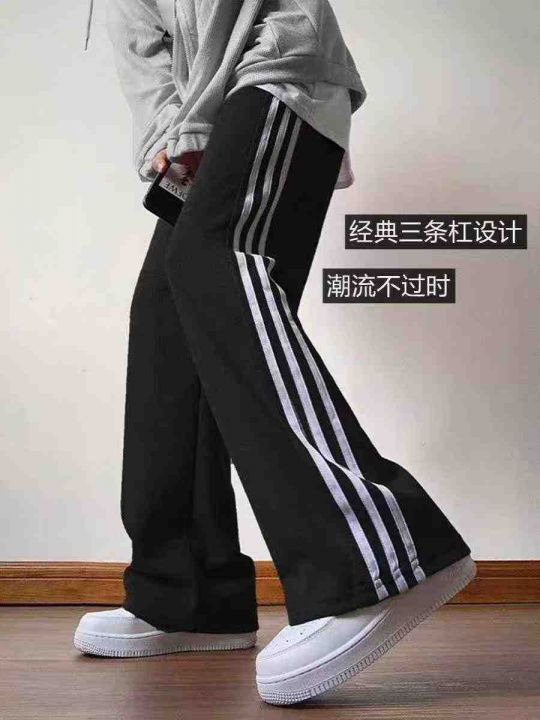 ☕️华夫格卫裤运动裤男女新款ins宽松直筒休闲显瘦三条杠高腰垂感阔腿裤256...