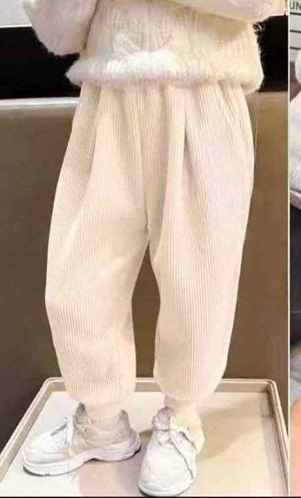加绒童裤,雪尼尔复合一体绒松紧腰有口袋运动休闲保暖童装裤子,965件,白...