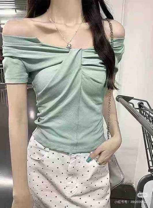 法式甜辣一字肩短袖125件,全清4.8,分货5.8,面料舒适透气,有弹力,褶皱...