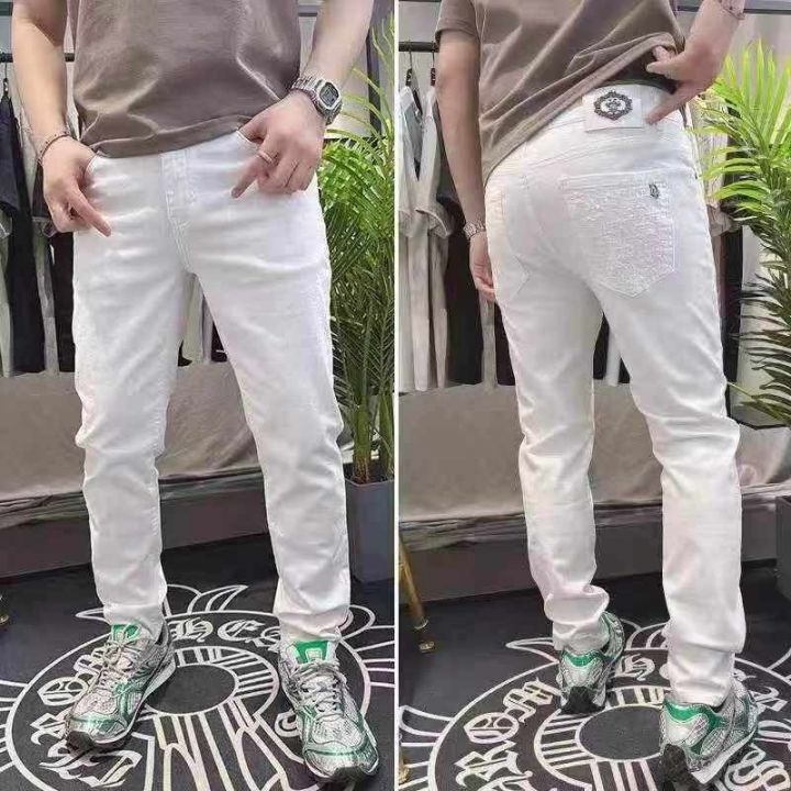 潮牌刺绣牛仔裤男款高端潮流弹力修身长裤,面料手感好,做工精致,黑白两色,经典百搭!100件起分货14.8