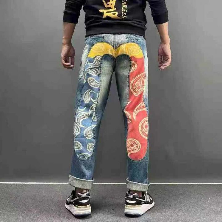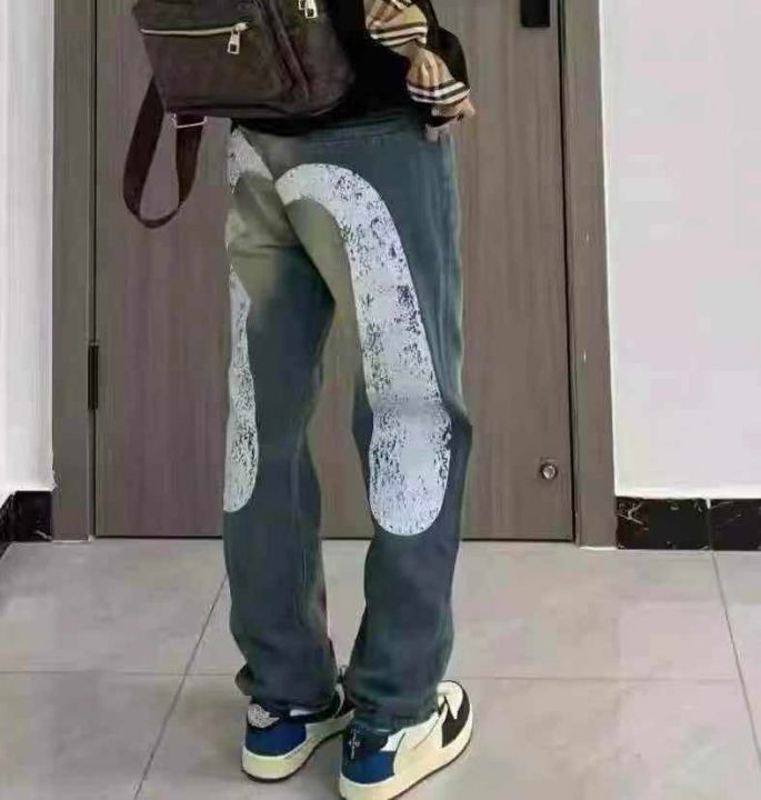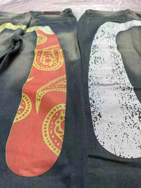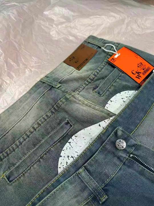 高品质潮牌福神银龙印花款!牛仔裤男款宽松做旧直筒休闲长裤,潮牌个性牛仔,别致设计,面料舒适,品质!100件起分货14.8