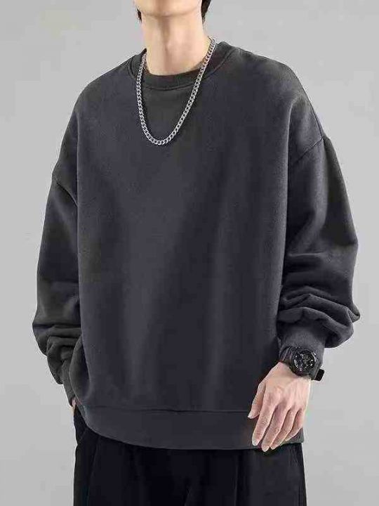 秋冬新款男士宽松简约百搭净版圆领棉卫衣,独立包装,后领包边,码数2XL-3X...