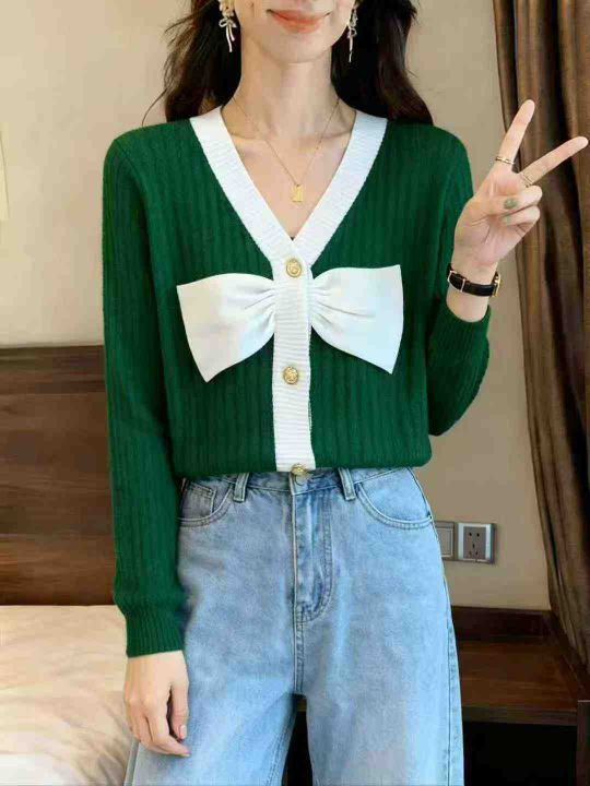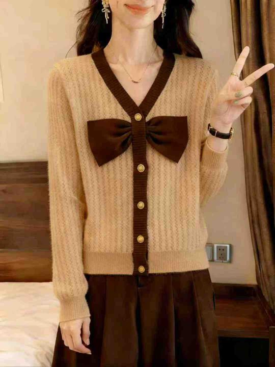 秋季新品优雅气质港风复古chic洋气蝴蝶结名媛小香风长袖针织毛衣,独立包装,均码面料柔软舒适宽松版,890件,全清9.9元超低价秒杀!分货加一!