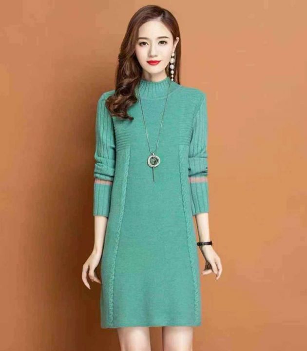 冬季新款加厚内搭外穿宽松慵懒风毛衣连衣裙,独立包装...