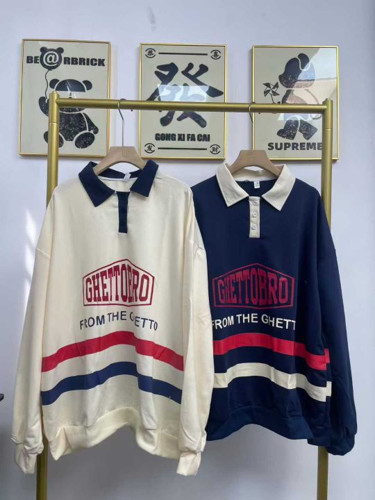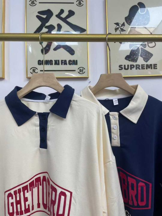 天猫在售款140件左右高品质夏季女装Polo领设计拼色字母印花宽松短袖T恤,后领包边,单款两色,码数M-2XL,独立包装