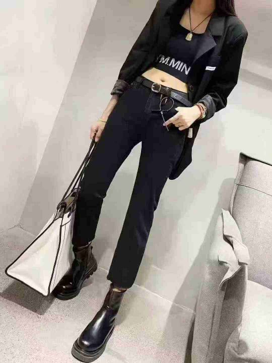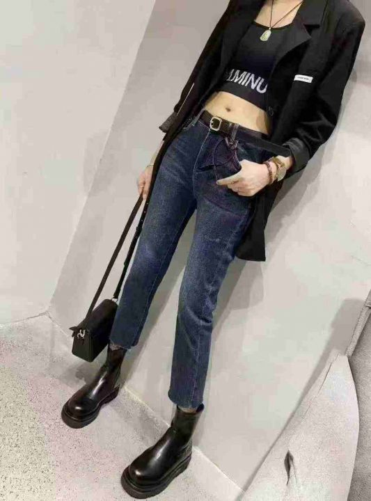 2️⃣开头秋季爆款!韩系百搭牛仔裤高腰+微喇王炸组合!精准贴合腰线不勒腹...