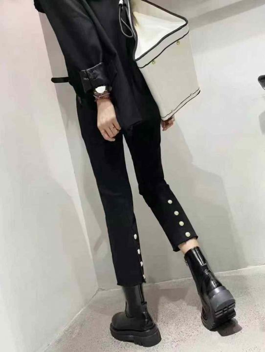 新款牛仔裤女开叉纽扣时尚弹力显瘦欧货排扣九分烟管裤...