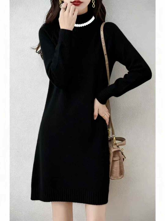 品牌原单秋冬新款宽松慵懒风高领套头连衣裙,独立包装带吊牌,均码面料柔软...