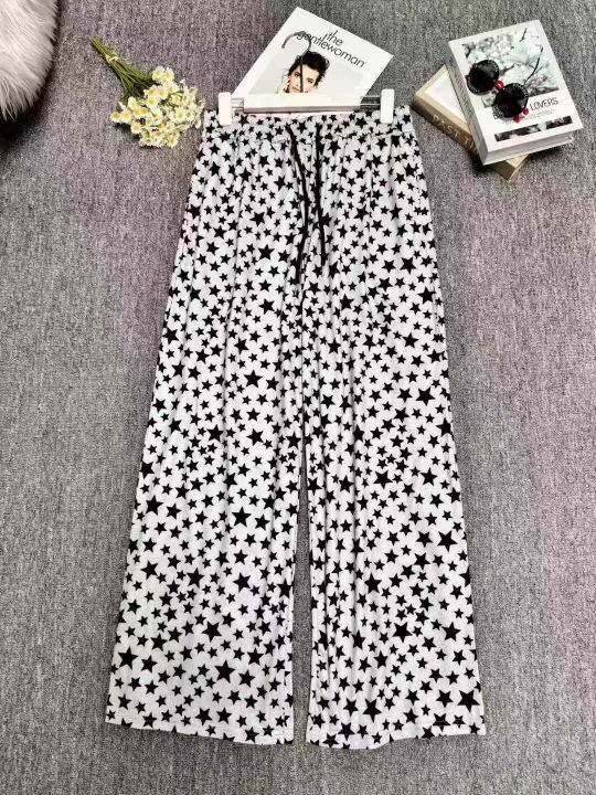 潮流女休闲裤豹纹星星条纹直筒裤,图片款,品质好,数量150件左右,码数s-xl,5件一包装,全清4.9(不分货)