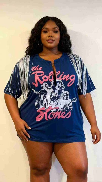 欧美大码印花流苏棉T恤700pcsSpicy girl Street hip-h...