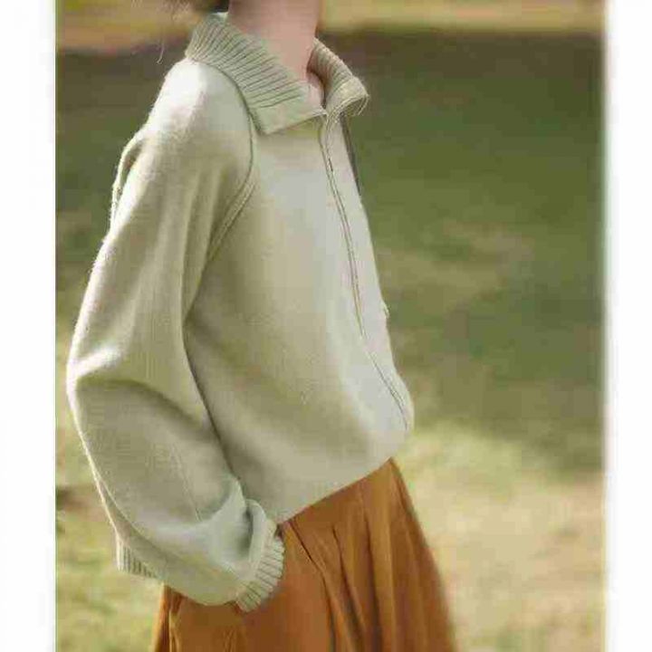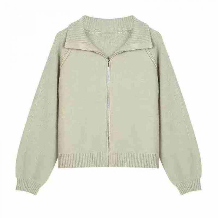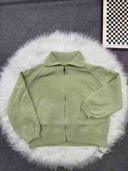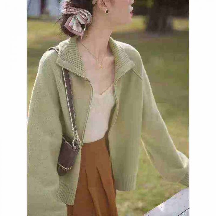全清13.8,绿色翻领上衣法式复古拉链针织开衫秋新款外穿休闲宽松毛衣外套女,单款单色,均码18件