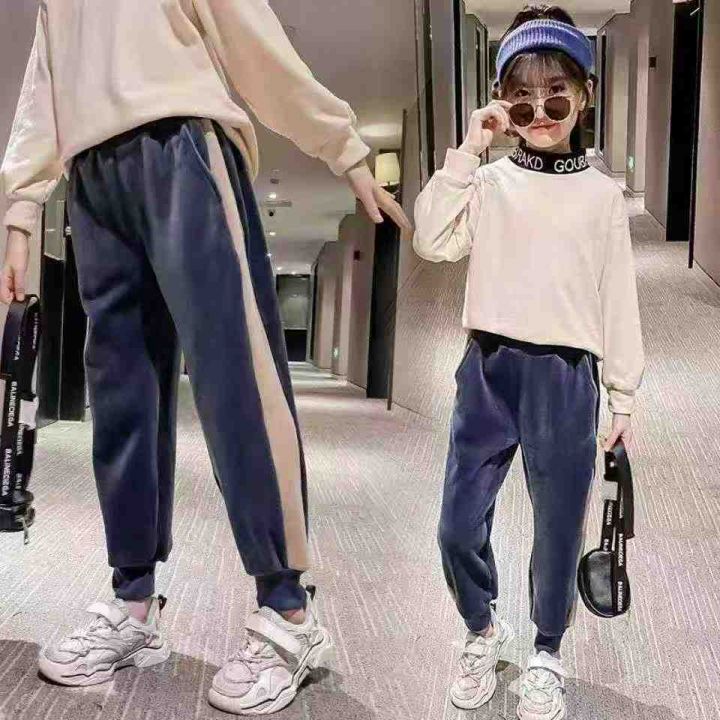 儿童运动裤加绒加厚秋冬新款外穿金丝绒一体休闲保暖裤...