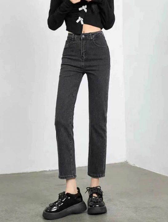 ☕️水泥灰阔腿牛仔裤女秋冬新款高腰显瘦宽松设计感直筒裤410条全清12.8元...