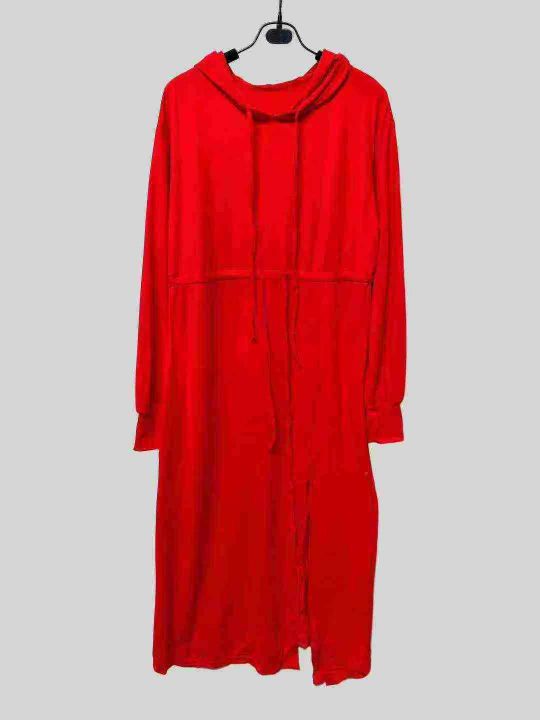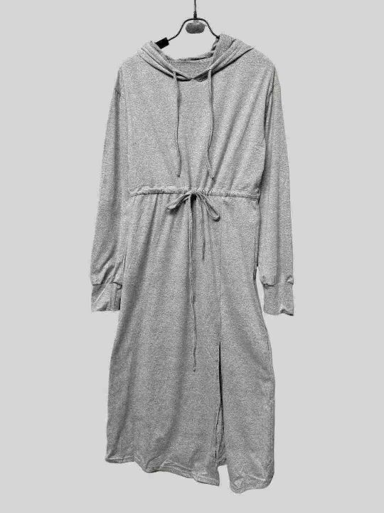 欧美时尚通勤连帽系带长袖开叉连衣裙,整款三色,数量98件,码数S-2XL,有收腰设计,高弹力,品质好,有独立包装。
