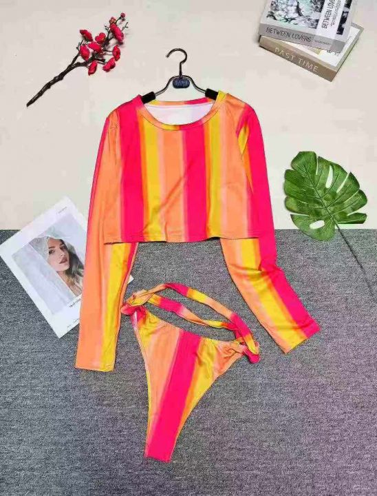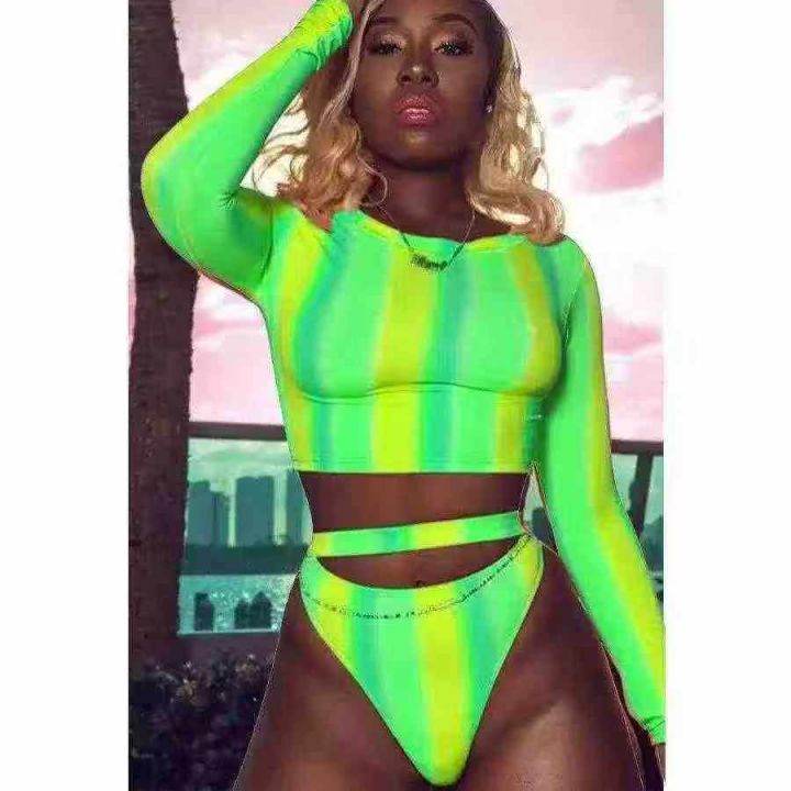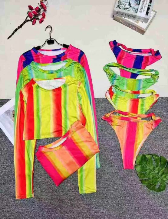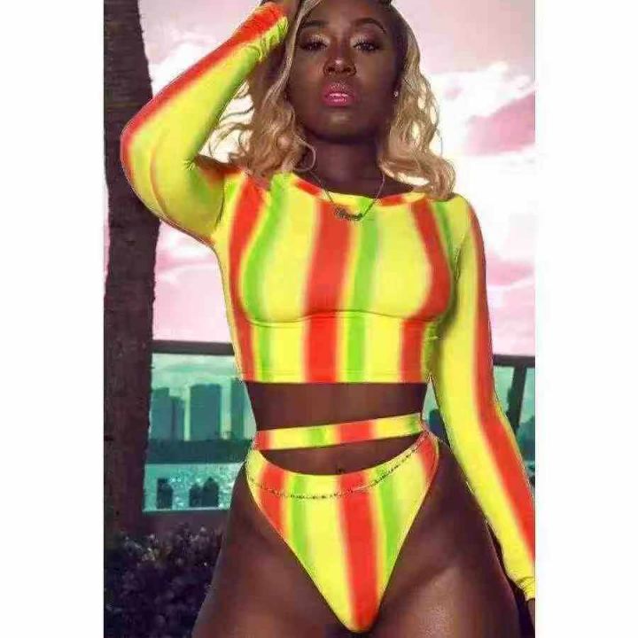 敦煌热卖欧美女装性感渐变色彩色条纹两件套 ,数量:212件,码数:S-2XL,整款四色,高弹力,品质好,有独立包装。