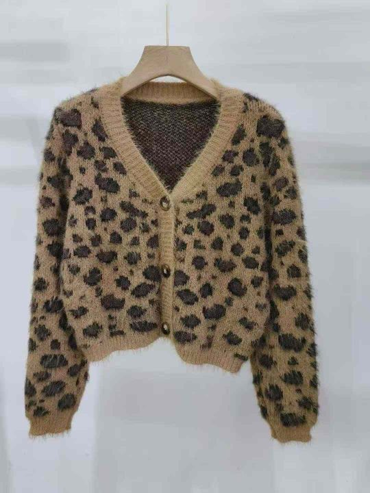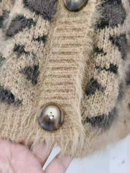 全清16.8,美式性感豹纹加厚V领毛衣开衫女秋冬季洋气宽松保暖软糯百搭外套,整款22件,不分货