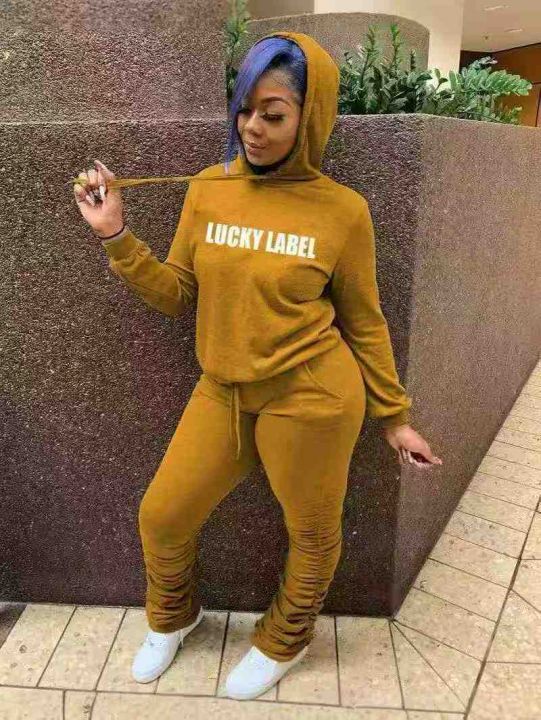 欧美时尚休闲字母带帽长裤两件套,整款多色,数量160套左右,码数S-2XL,品质好,有独立包装。