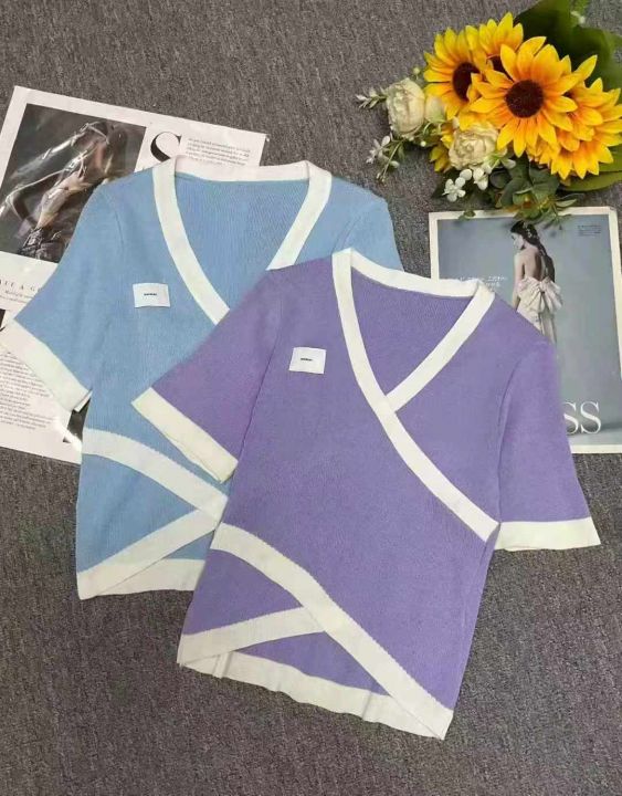 夏季新款性感V领不规则交叉辣妹设计感小众洋气针织短袖,独立包装,均码面料柔软舒适弹力大,530件,全清5.9元超低价秒杀!分货加一!