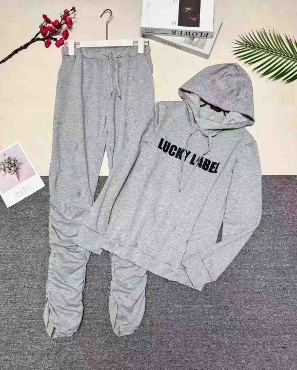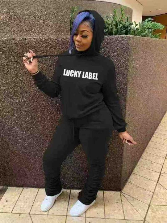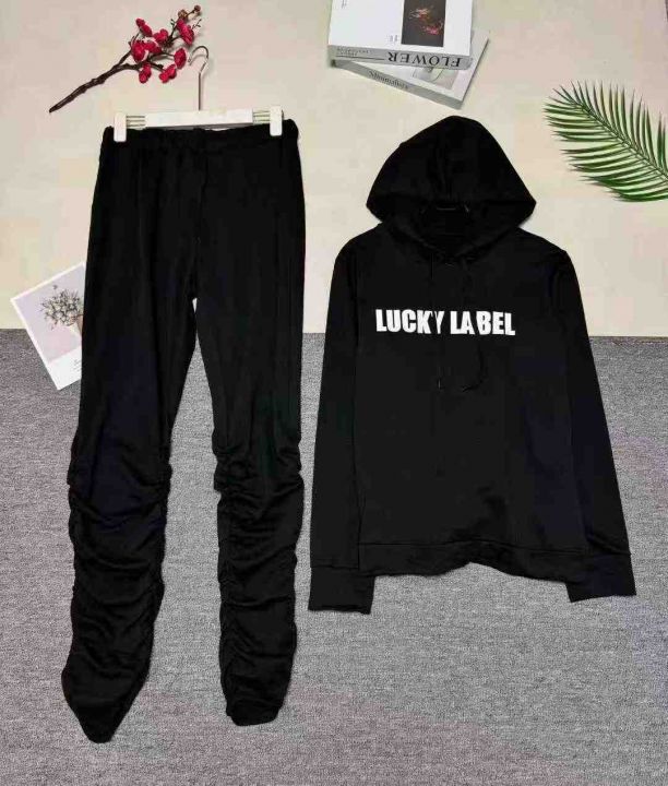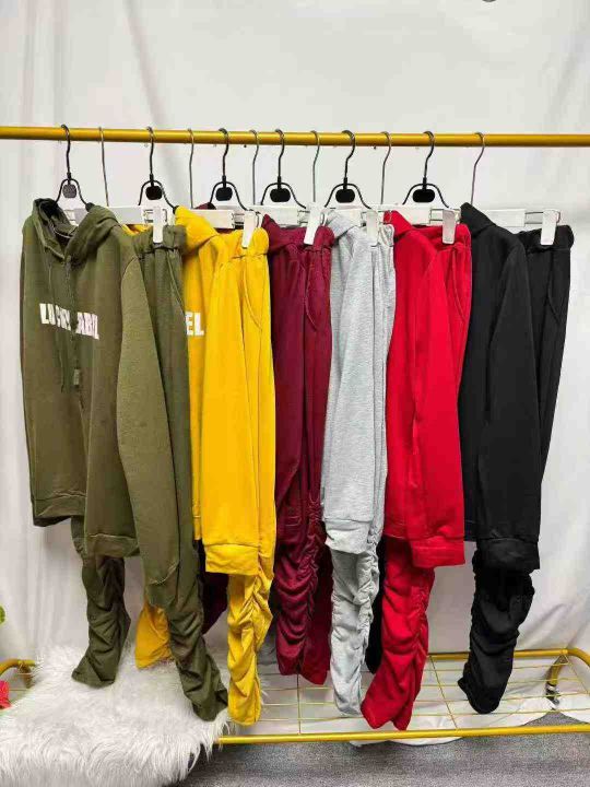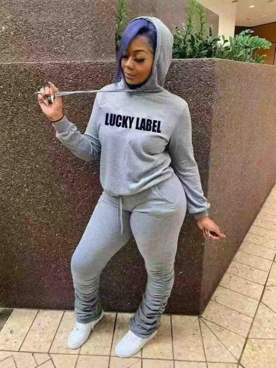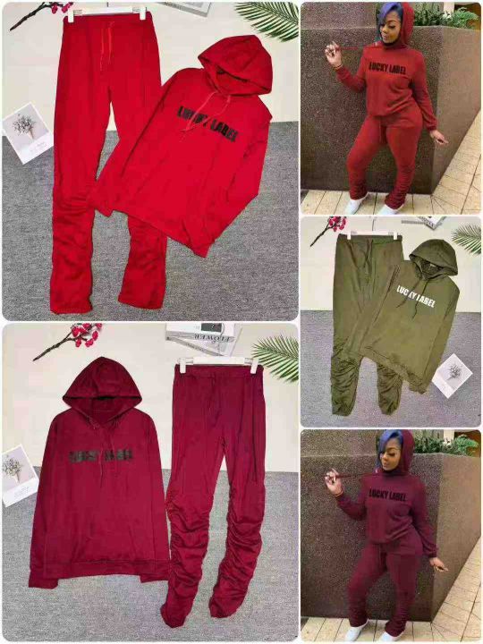 欧美时尚休闲字母带帽长裤两件套,整款多色,数量160套左右,码数S-2XL,品质好,有独立包装。