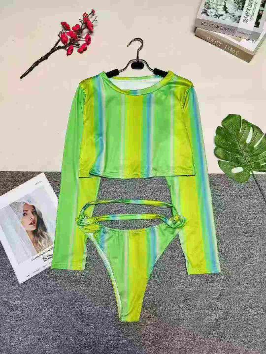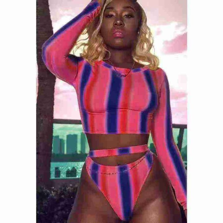 敦煌热卖欧美女装性感渐变色彩色条纹两件套 ,数量:212件,码数:S-2XL,整款四色,高弹力,品质好,有独立包装。