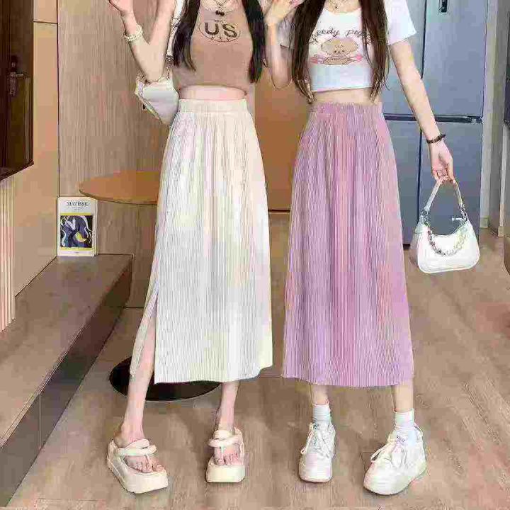 ☕️雪纺百褶半身裙女夏季新款松紧高腰垂感开叉a字中...
