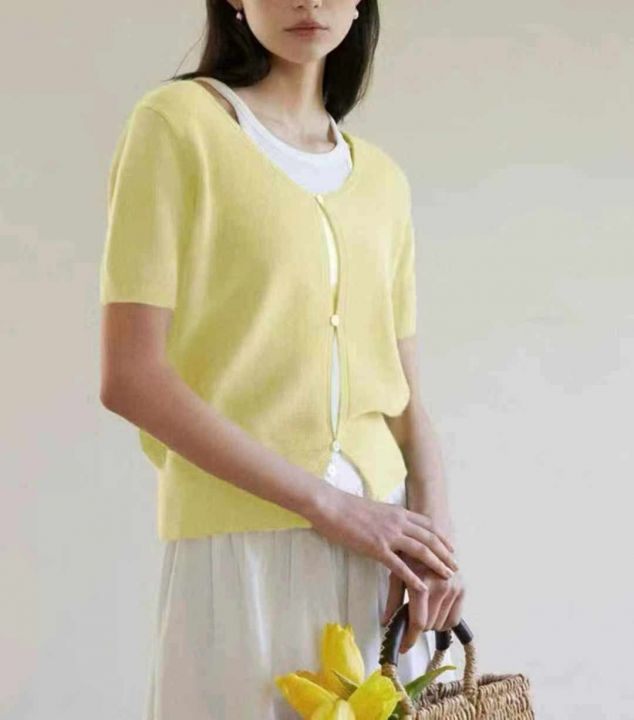 夏季新款法式气质弹力修身显瘦短袖针织开衫,独立包装...