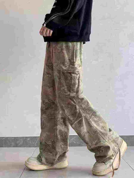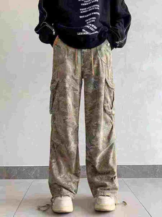 ☕️迷彩工装牛仔裤男秋季潮牌美式vibe高街痞帅宽松直...