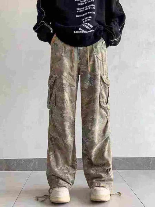 ☕️迷彩工装牛仔裤男秋季潮牌美式vibe高街痞帅宽松直...