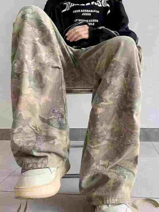 ☕️迷彩工装牛仔裤男秋季潮牌美式vibe高街痞帅宽松直...