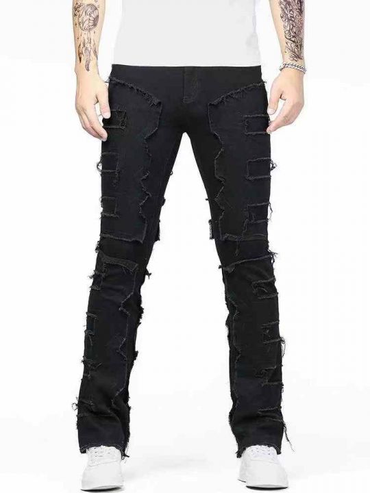 秋季新品男士Mnml FOG风格黑色直筒寬松牛仔裤,独立包...