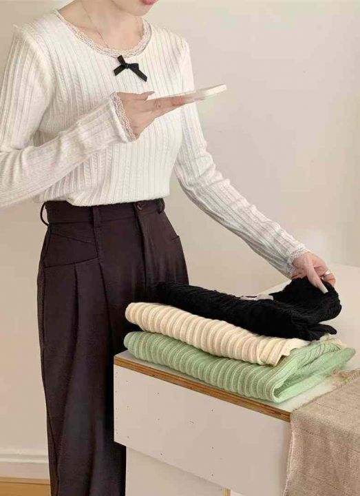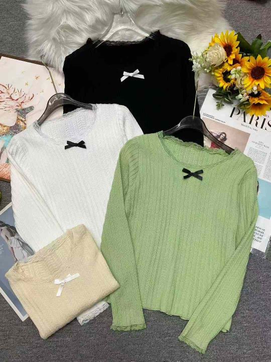 早秋新款韩系穿搭甜心奶糕蕾丝拼接蝴蝶结柔棉提花长袖针织套头毛衣,独立包装,均码面料柔软舒适弹力大,450件,全清6.9元超低价秒杀!分货加一!。 货号:1303