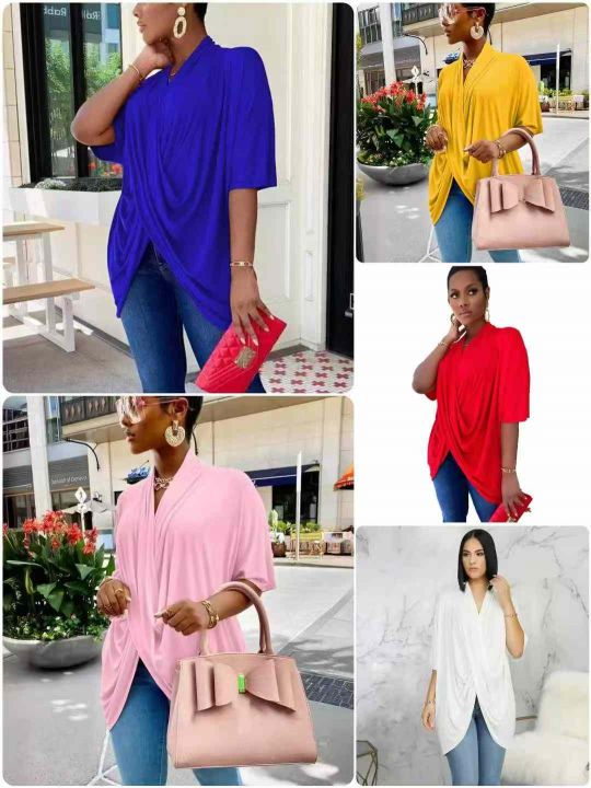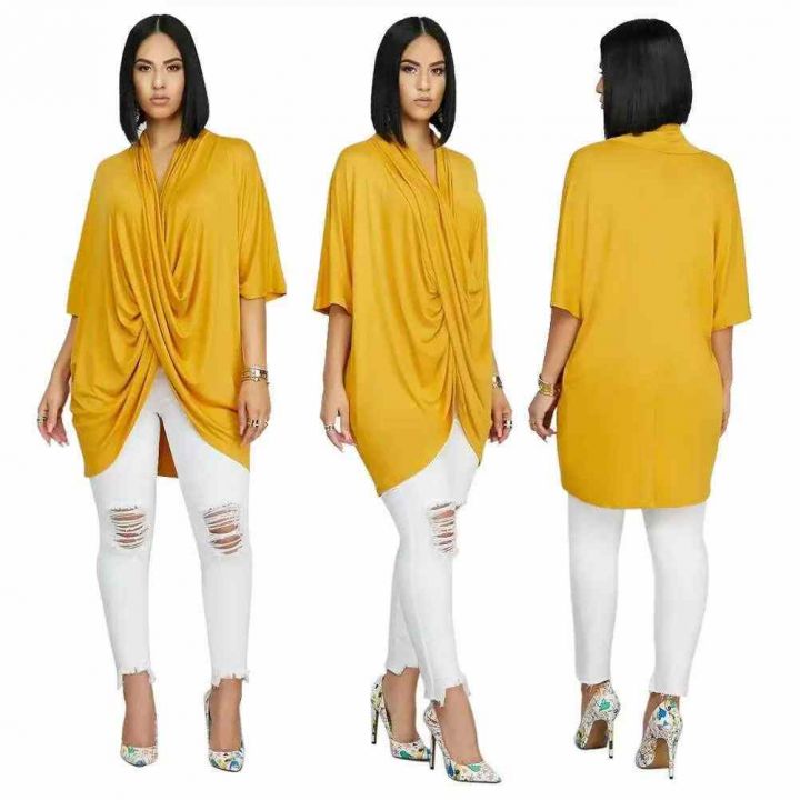 欧美女装大爆款时尚交叉气质个性V领宽松长款上衣,整款五色,数量200件左右,码数S-2XL,品质好,有独立包装。