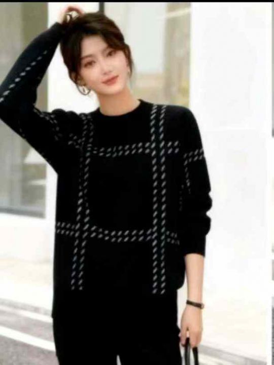 捡漏款,秋冬新款宽松慵懒风提花圆领北极绒套头毛衣,...