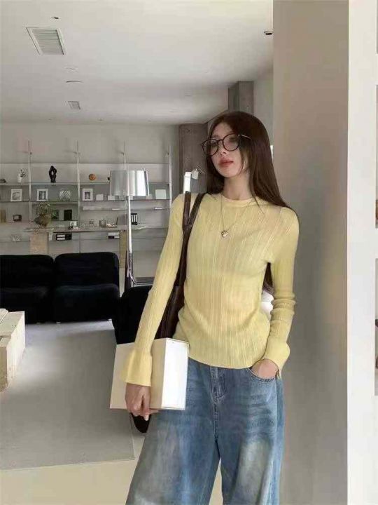 秋季新品美拉德色系宽松胖mm设计感长袖针织衫+冰丝吊...