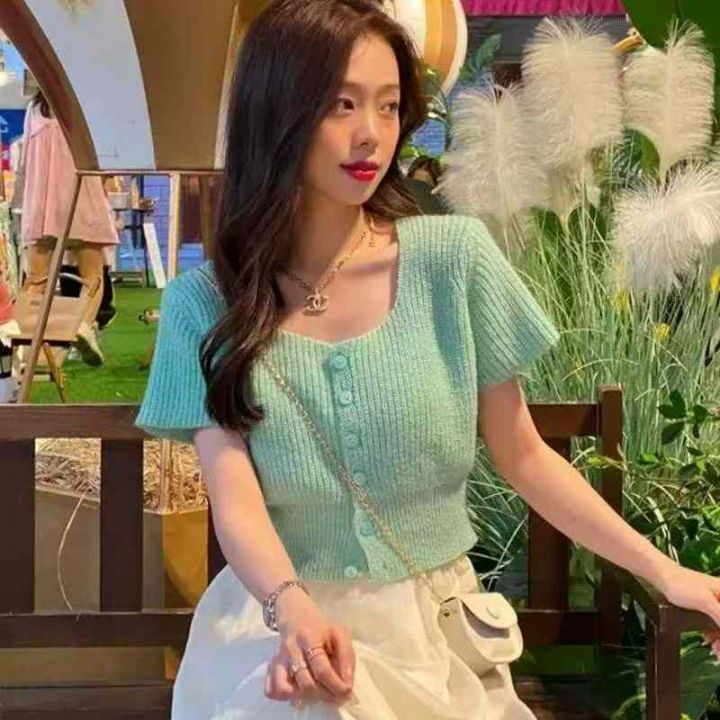 夏季新款法式冰丝弹力修身短款针织开衫,独立包装,均...