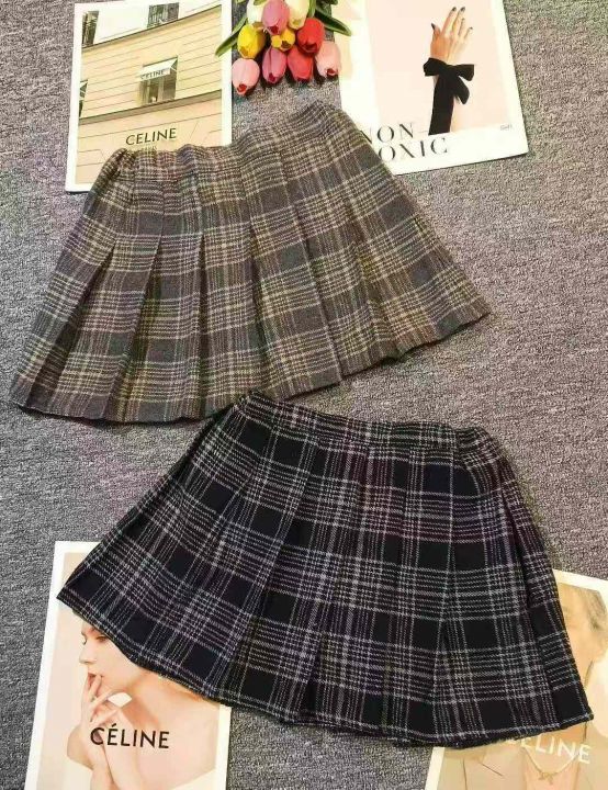 复古撞色设计感格纹毛呢百褶裙,[爱心]80件左右,蓝格为主,码数2XL-4XL,穿80-120斤,[666]工厂原包装瑕疵