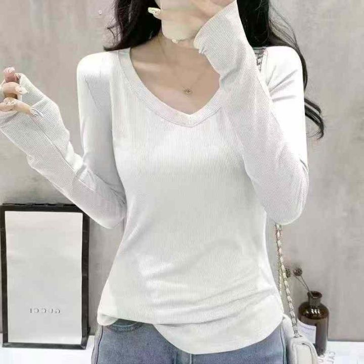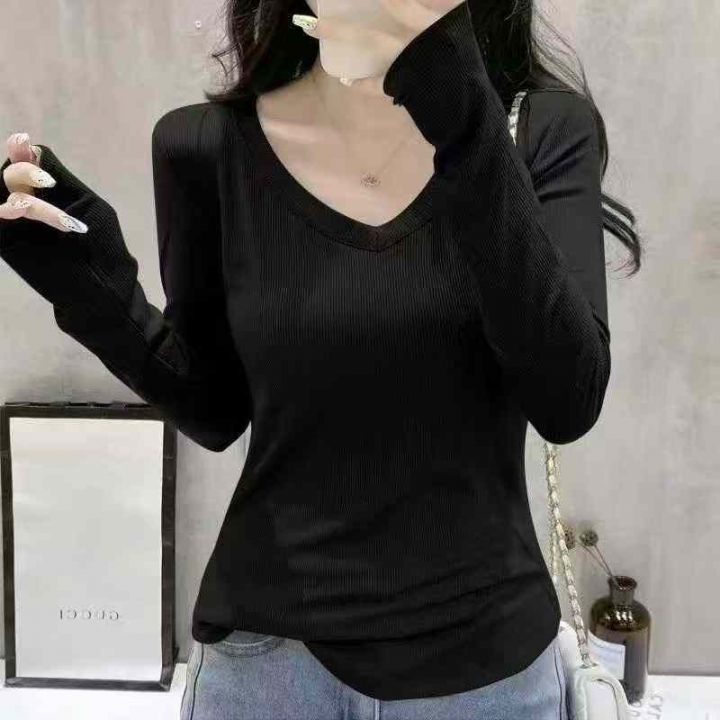 [月亮]:5.9清800件[月亮]:简约内搭外穿高弹V领长袖T...
