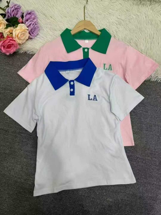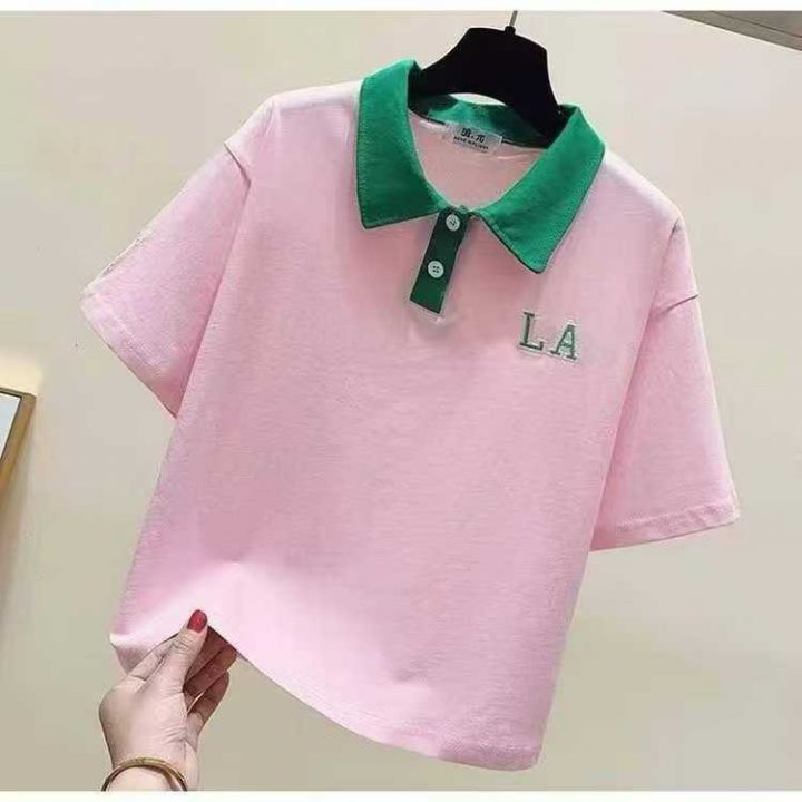 323件,夏季纯棉polo领女t恤短袖宽松翻领学院新款撞色...