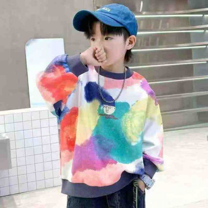 童装扎染卫衣154件3.9,面料柔软,后领包边,图案字母...