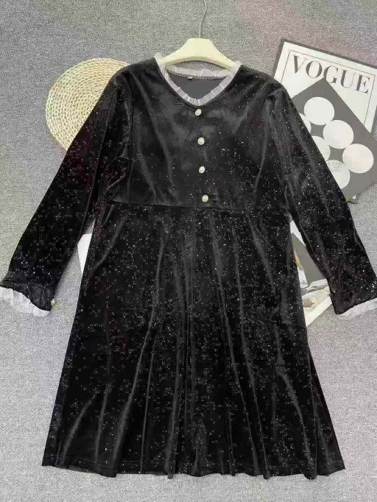 ☕️大码胖mm早秋法式小香风小礼服赫本风小黑裙金丝绒秋冬连衣裙49条全清11.8元,码数M到4XL,版型大,单款黑色,独立包装[庆祝][庆祝][庆祝]