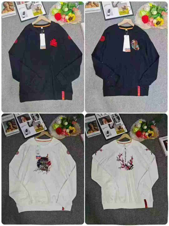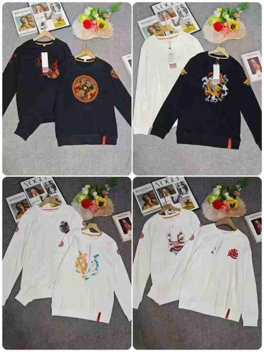 实体供应链回收2800件国风纯棉潮牌重工重磅刺绣圆领舒卫衣,码数S-5XL。面料柔软舒适,黑白色系为主,万针刺绣工艺,高克重面料,中山货做工非常好,全部独立包装!分货➕1