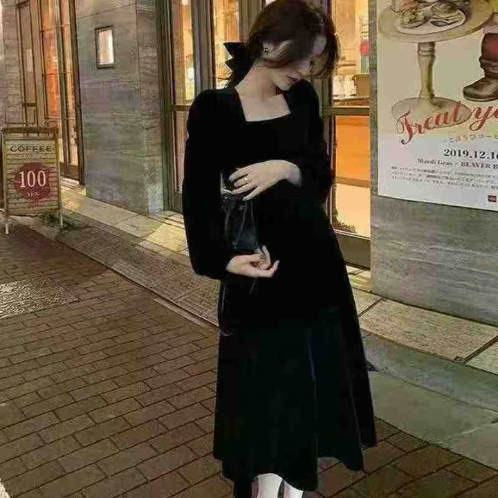 226件早秋冬法式小香风小礼服赫本风小黑裙金丝绒秋冬...