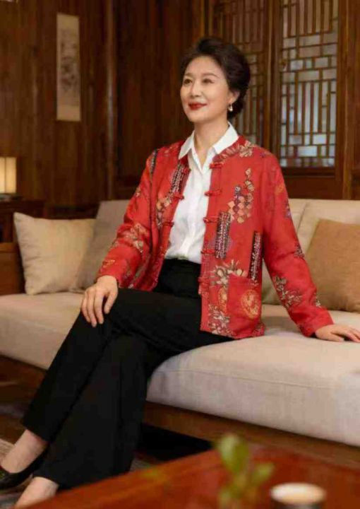 秋季新品复古盘扣双兜中老年妈妈装减龄百搭时尚民族风...