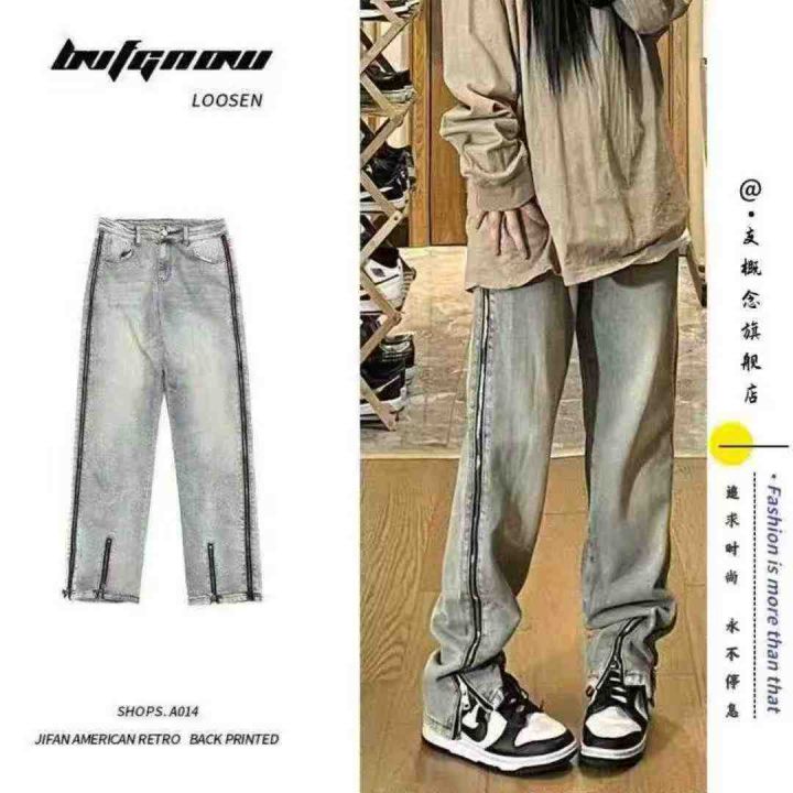 美式vibe裤子ins高街潮黄泥牛仔裤男女侧边拉链开叉宽松直筒长裤,码数L-3XL,数量330件,独立包装,货品干净,图一色为主,
