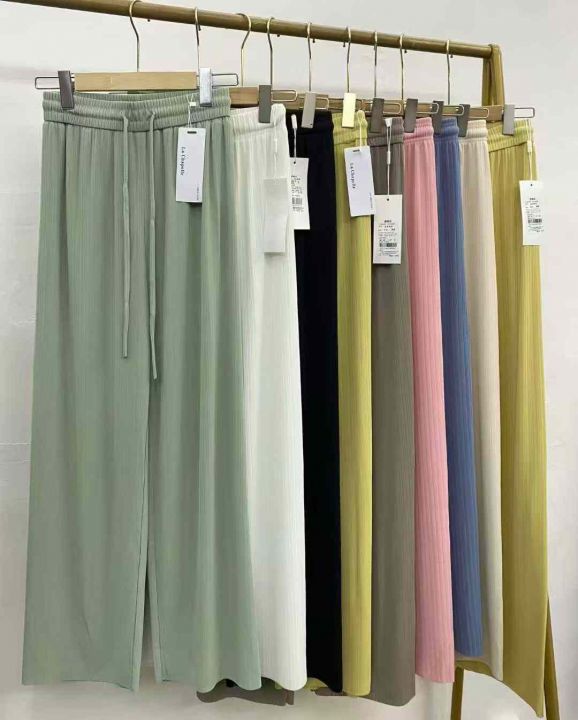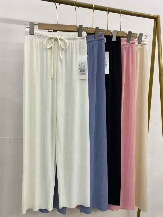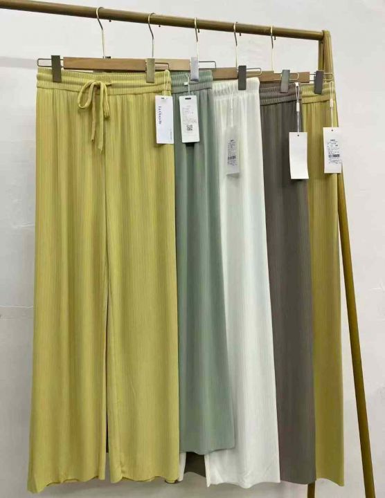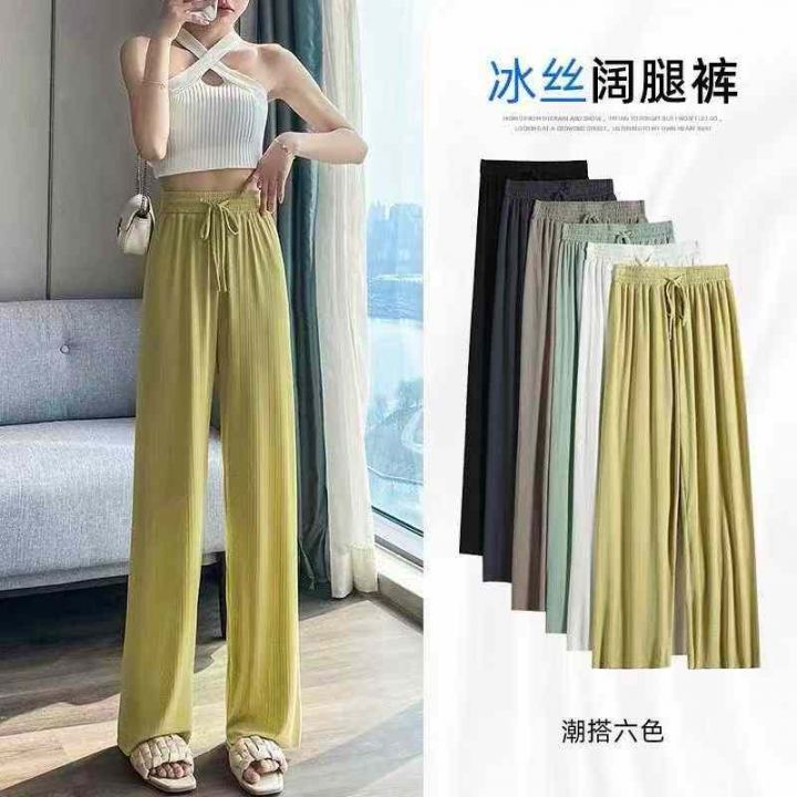 641松紧抽绳冰丝阔腿裤。面料柔软舒适,垂感顺滑。两种面料,裤头有包边和不包边两种,裤长有两种长度,码数S-2XL,独立包装带吊牌,全清7.8分货加1