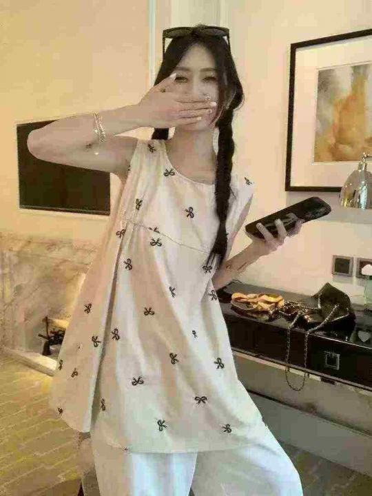 法式复古蝴蝶结宽松无袖上衣101件8.5,面料舒适,蝴蝶结刺绣,有内衬,码数...