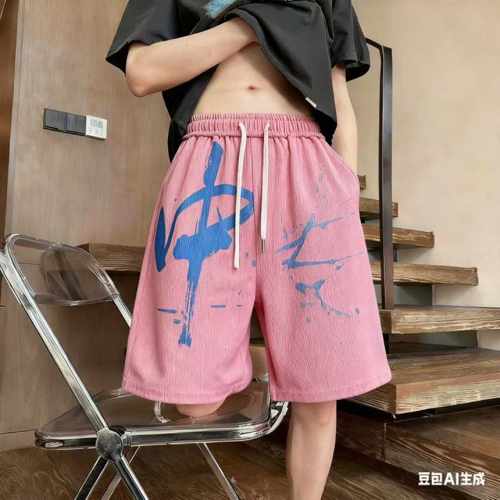 384条,涂鸦字斜纹棉短裤,男夏季薄款宽松青少年运动...