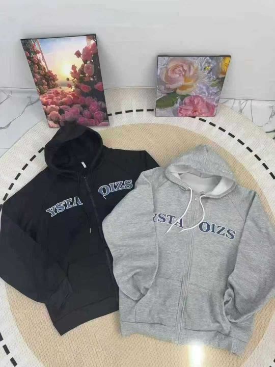 8.9清931 春秋复古潮牌男女卫衣开衫情侣装连帽宽松青...